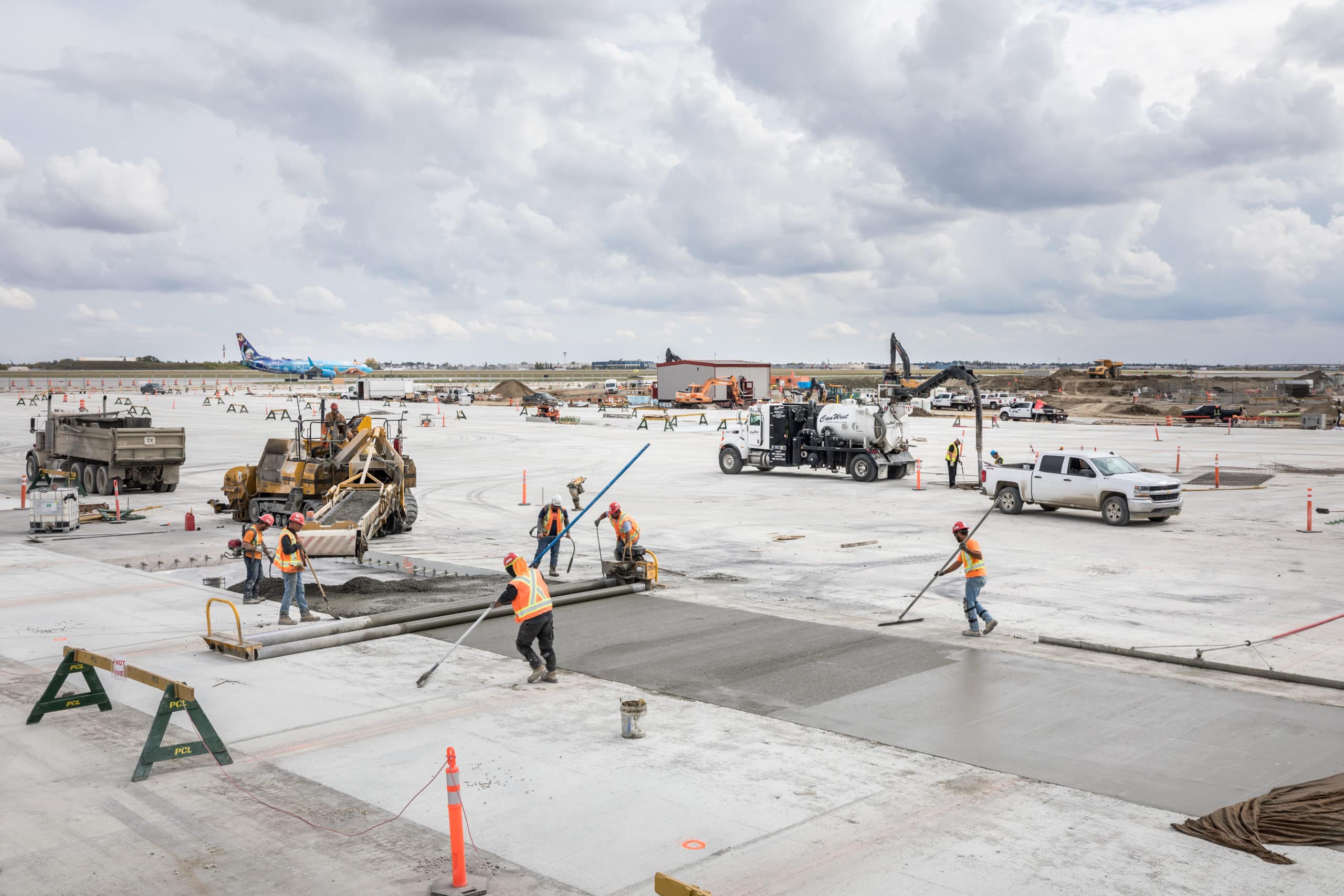 In 2019, the YYC Calgary International Airport sought to build a new centralized deicing pad, the East Deicing Apron, with low-carbon concrete. In August and September, concrete made with CarbonCure was used to build the East Deicing Apron; and the first planes used the facility in January 2020. The East Deicing Apron involved the second largest pour of CarbonCure concrete in a single project, and the largest quantity to be used at an airport in Canada.